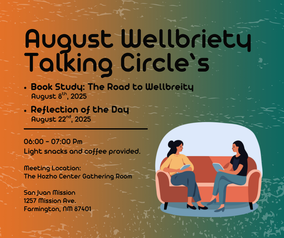 We invite you to join us for Wellbriety as we take a thoughtful exploration of The Red Road to Wellbriety in the Native American Way book. This gathering will take place at 6 PM upstairs in the Hozho Center, and we will provide light refreshments for your enjoyment. |