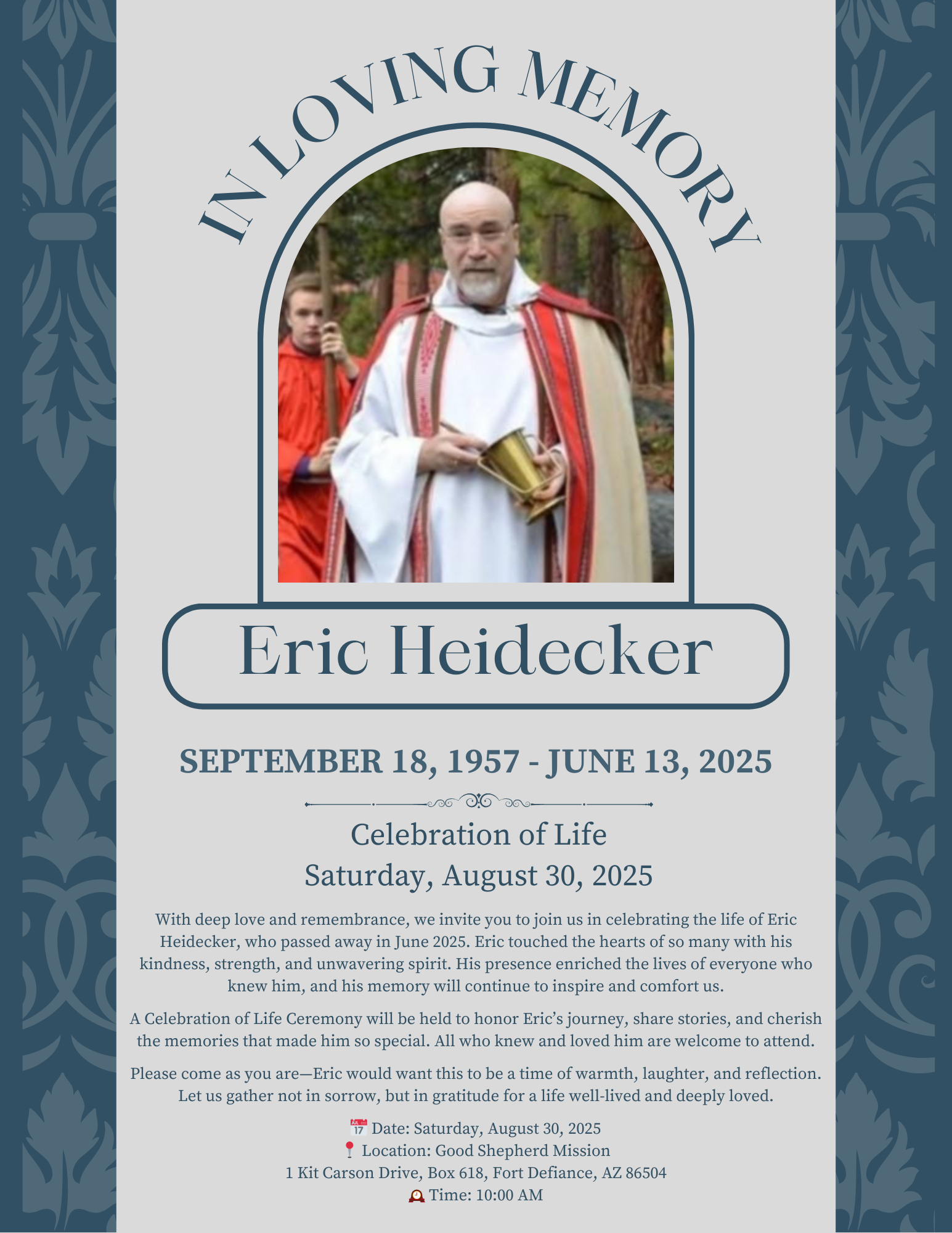 In Loving Memory of Eric Heidecker Celebration of Life – August 30, 2025 With deep love and remembrance, we invite you to join us in celebrating the life of Eric Heidecker, who passed away in June 2025. Eric touched the hearts of so many with his kindness, strength, and unwavering spirit. His presence enriched the […] |
